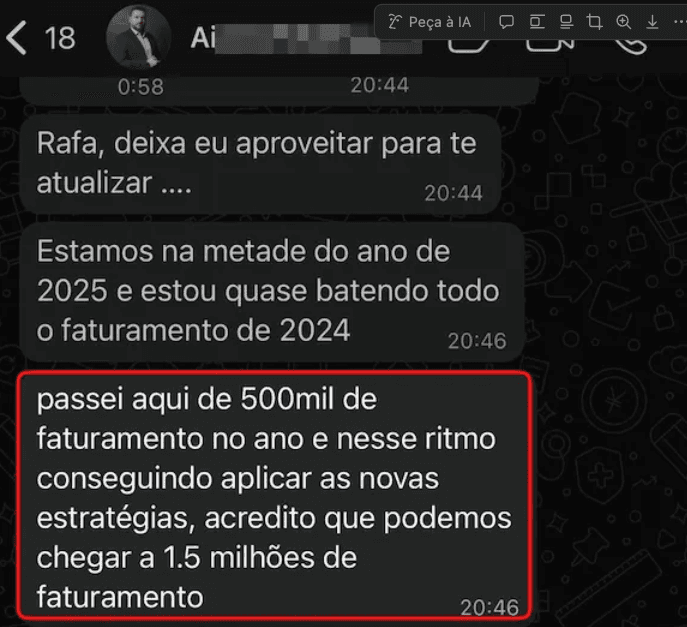 Mais de R$500k de faturamento em 6 meses