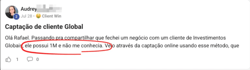 Cliente de R$1M captado